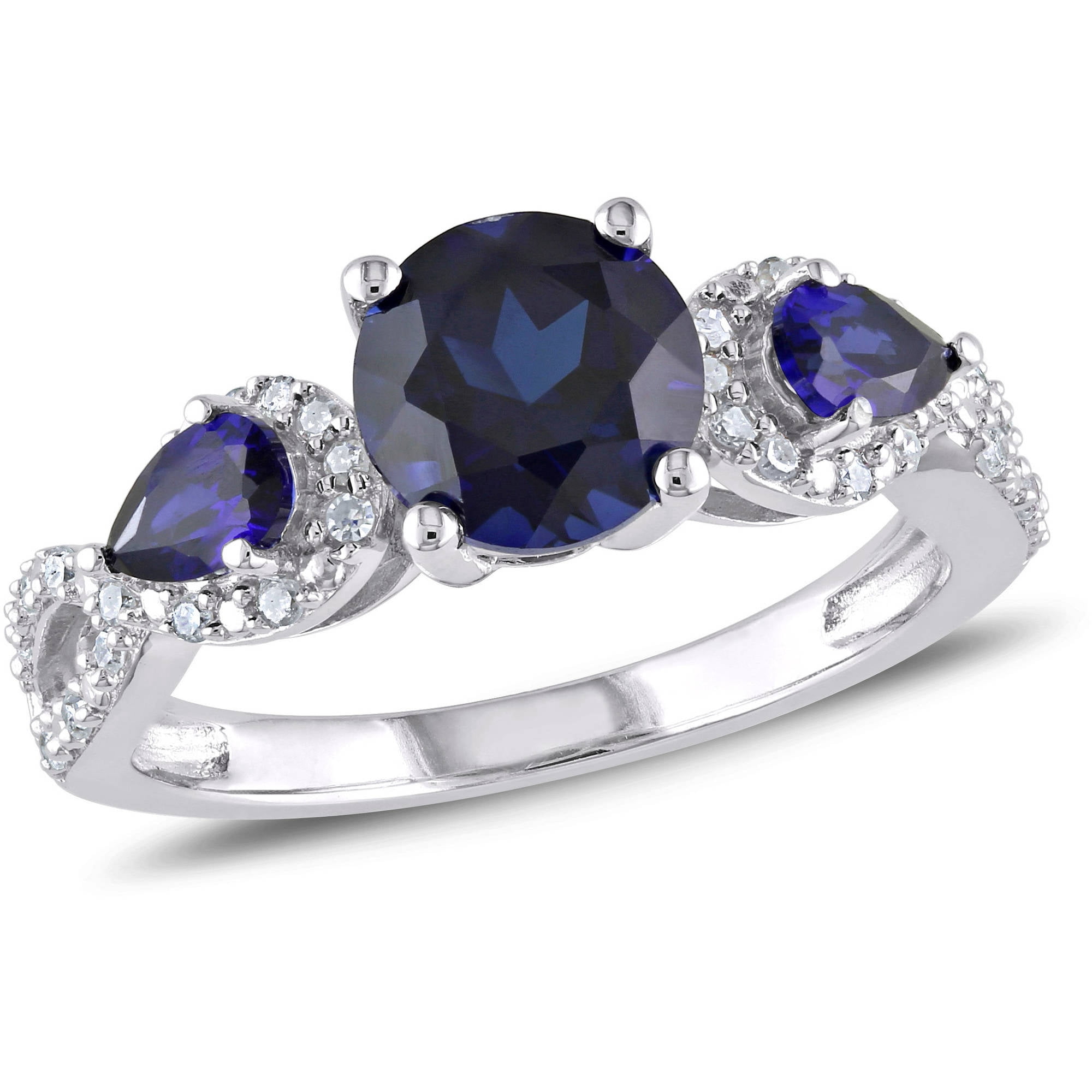 Miabella Women S 2 1 3 Carat T G W Pear Shaped Created Blue Sapphire And 1 6 Carat T W Diamond Sterling Silver Infinity Engagement Ring Walmart Com